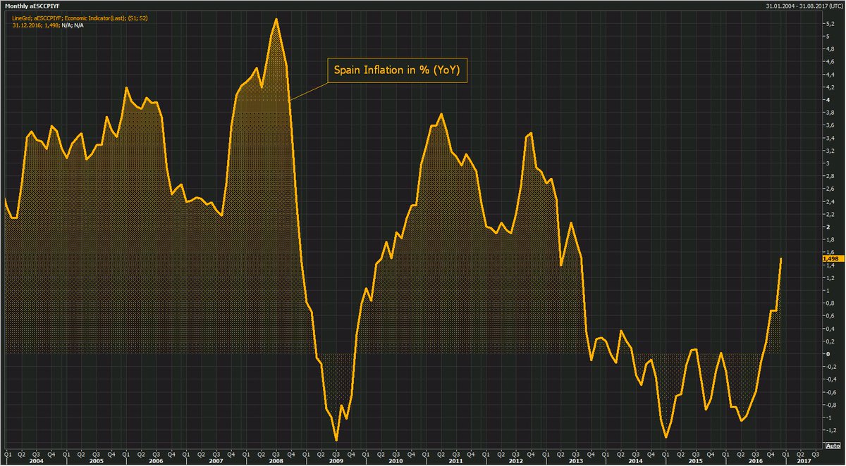 In case you missed it. #Inflation in #Spain sharply accelerates in Dec. CPI rises 1.5% YoY vs 0.9% expected, largest increase since Aug2013.