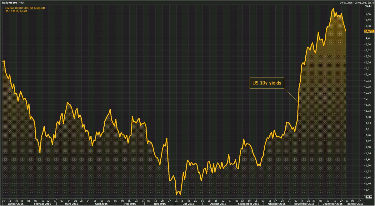 Bond history made in 2016: US 10y yield ends yr at 2.446% vs 2.273% at end of 2015. Up 84bps during 4Q16, biggest quarterly rise since 1994.