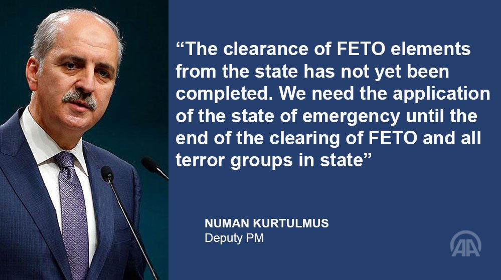 LATEST — State of emergency to continue until FETÖ completely removed from all state institutions, Deputy PM Kurtulmuş says