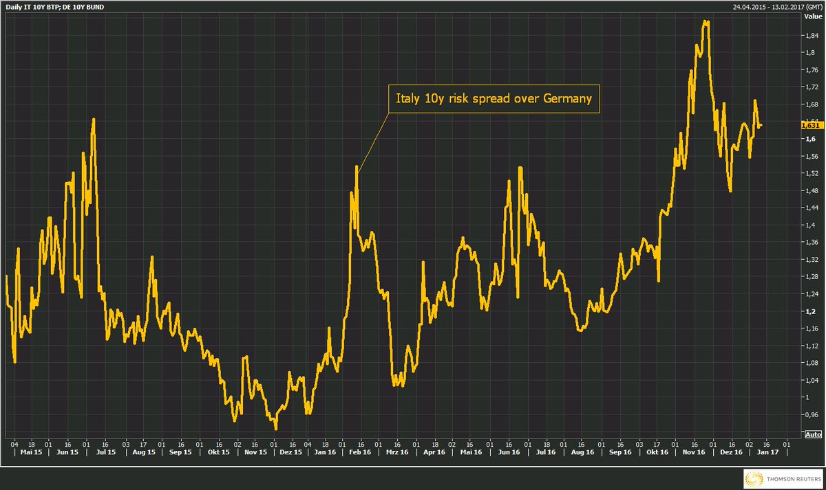 #Italy’s 10y risk spread over Germany drops as Italy Constitutional Court rejects union request for referendum on ex-PM Renzi’s labor reform