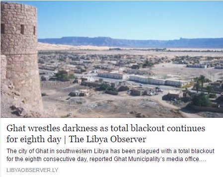#Libya's extensive, extended power outage: No electricity in Misrata 9pm-3pm (18 hrs), Tripoli 15 hrs+, Ghat 8 days https://www.libyaherald.com/2017/01/15/power-returns-gradually-after-total-blackout-to-most-libya/ …