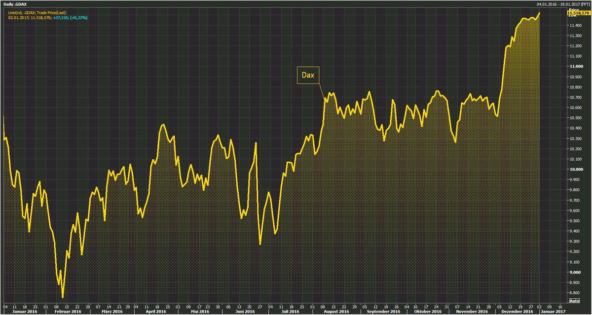#Germany's Dax starts higher to 2017 >10,500 points but analysts see little potential left after Dec run, Predict Dax at 11,823 at end-2017.