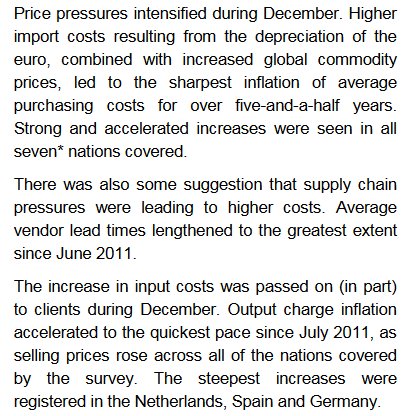 #Eurozone (2) | Markit: Price pressures intensified during December with input costs reaching a five-and-a-half high.