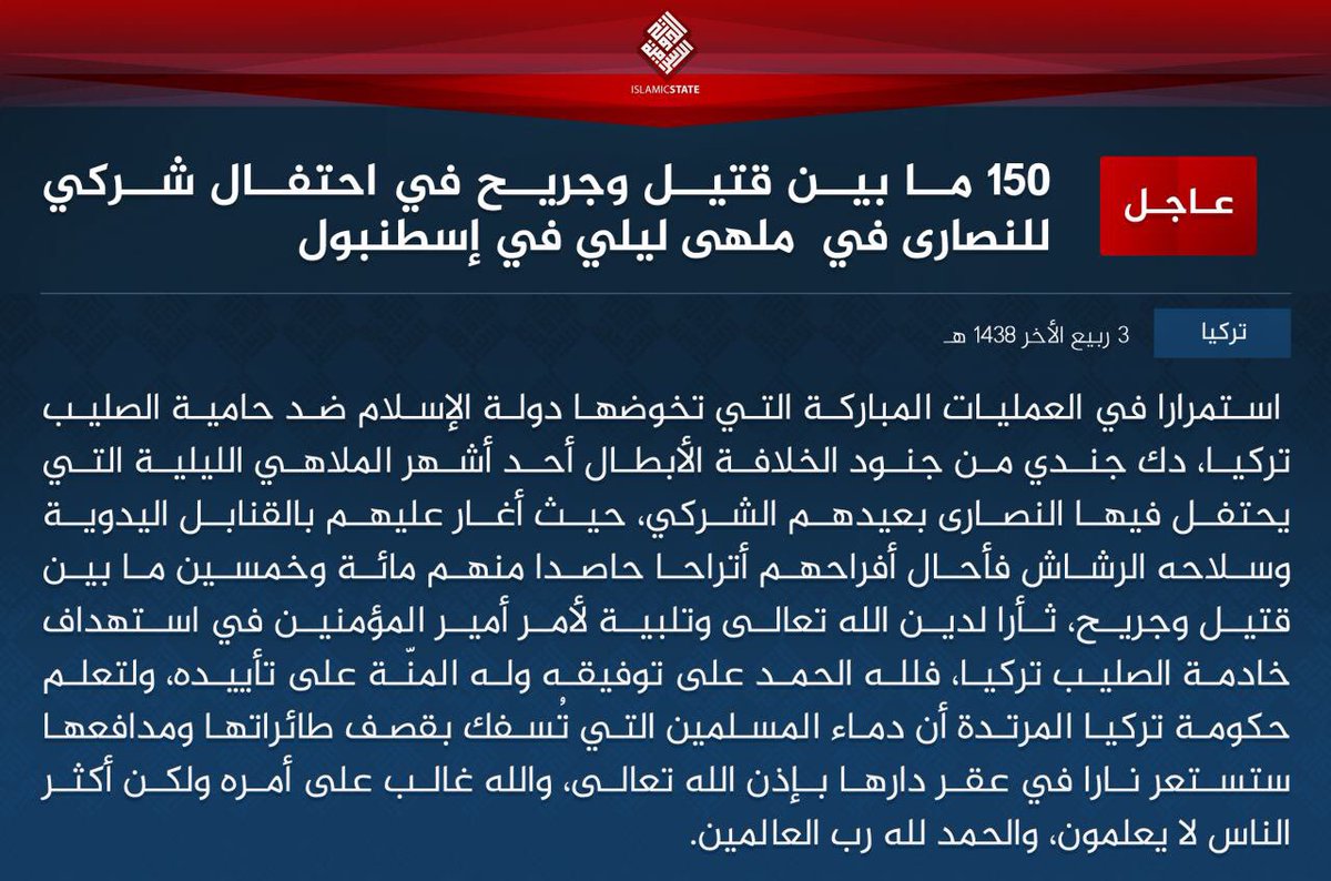 ISIS at war with Turkey. Istanbul attack "continuation of blessed operations carried out by Islamic State against protector of the Cross."