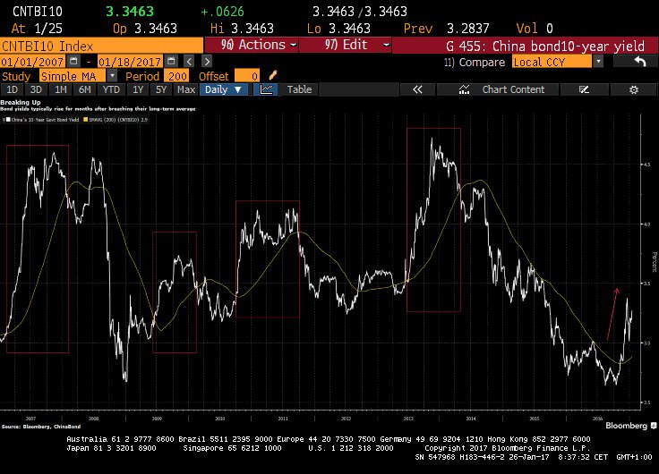 #China bond mkt in peril: While PBOC injected record amount of funds into system, 10y yields jump after breaching long-term avg. (via BBG)