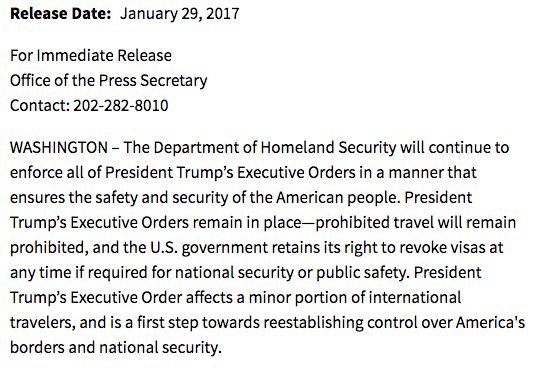 #BREAKING Dept. Of Homeland Security Issues Release: They "will continue to enforce all of President Trump’s Executive Orders" #MuslimBan