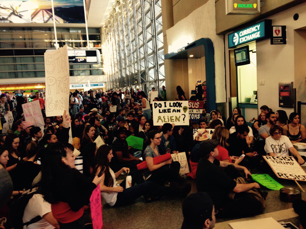 Sit-in is growing at US Customs and Border Protection office at Tom Bradley terminal at LAX.