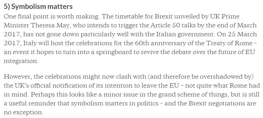 Theresa May wants to avoid triggering Art50 too close to 60th anniversary of Treaty of Rome. Symbolism matters, as I wrote last October.