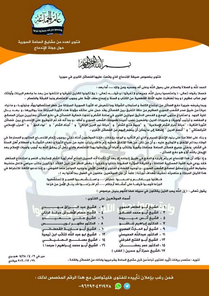 Nour al-Din Zengi also denied scholars signature on the unification (with #AQ) document.