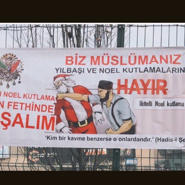 A banner in #Istanbul few days ago: 'We are Muslims. No to New Years Eve and Christmas celebrations.' #Reina source: @andreaskorinov