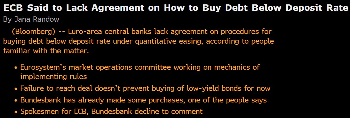 #ECB Said to Lack Agreement on How to Buy Debt Below Deposit Rate - Bloomberg (citing people familiar with the matter)