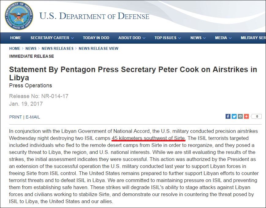 Statement by @PentagonPresSec regarding the #US airstrike in #Libya- main kicker is proximity of established #ISIS camps to #Sirte