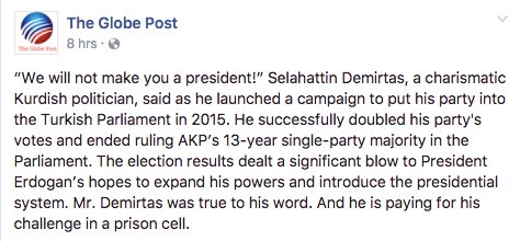 Demirtas did not give Erdogan an easy pass for his presidential ambitions. He is paying for this in prison. http://theglobepost.com/2017/01/19/erdogans-presidential-rival-faces-142-years-in-prison/ …