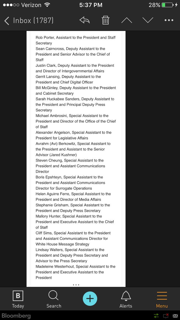 New list of White House staff includes @SarahHuckabee @OMGrisham @lwalters @CaliforniaPanda @lansing @BorisEP @Cliff_Sims @SeanCairncross.