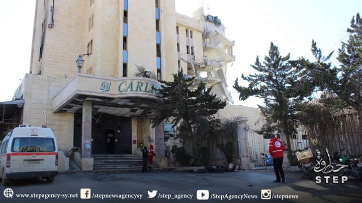 More pics of US-led Coalition bombing of Carlon Hotel used by JFS/Nusra and Zinki
