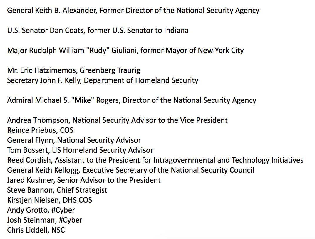 Here are the attendees at Trump's cyber experts meeting, per the White House.