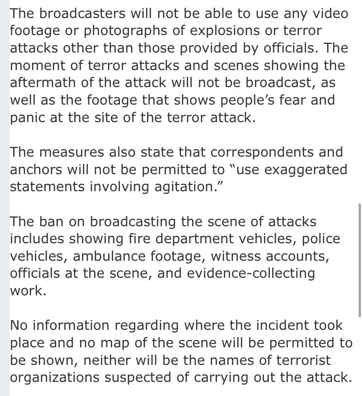 Draconian rules being imposed to sanitize terror events in Turkey.