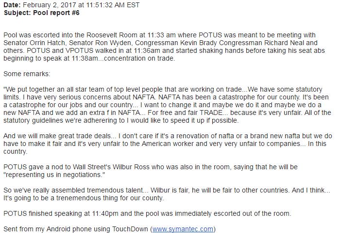 Trump appears to say Wilbur Ross will be leading NAFTA negotiations.