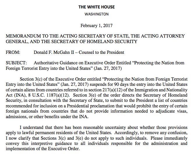 BREAKING: Here’s The White House Memo Used To "Clarify" That Green Card Holders Are Not Covered By Trump’s Ban: https://www.buzzfeed.com/chrisgeidner/heres-the-white-house-memo-used-to-clarify-that-green-card-h?utm_term=.vln7eGLMlO#.rs6x60OMNK …