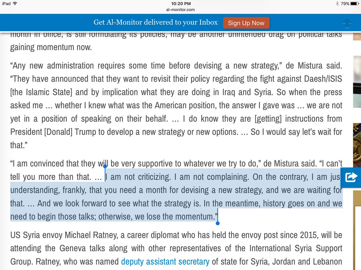 UN Syria envoy on waiting for new US admin to figure out its strategy http://www.al-monitor.com/pulse/originals/2017/02/syria-talks-geneva-modest-expectations-us-policy.html …