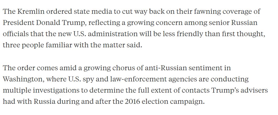 EXCLUSIVE: The Kremlin is telling state media to cut back on the fawning Trump coverage https://www.bloomberg.com/politics/articles/2017-02-16/kremlin-said-to-tell-media-to-cut-back-on-fawning-trump-coverage … @world_reporter