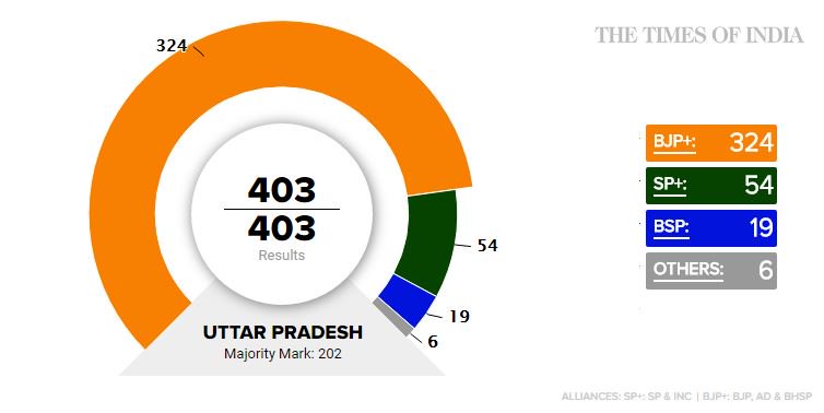 #VerdictWithTimes Final results of Uttar Pradesh #ElectionResults2017