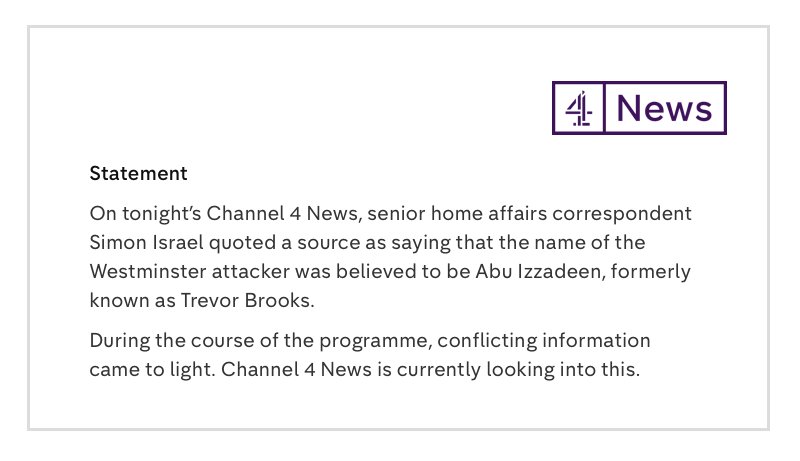 Channel 4 seems to have named the wrong man for the London attack today. Oh my...