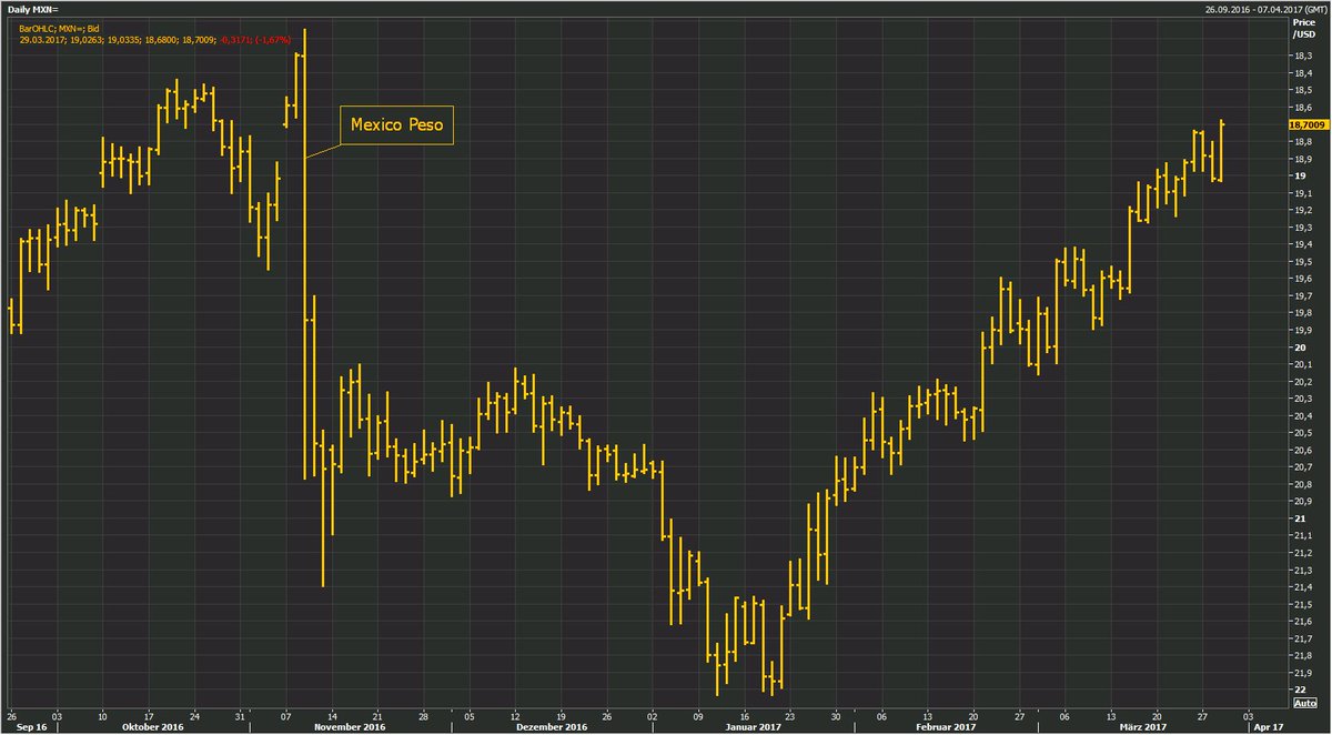 #Mexico Peso hits strongest level since US election as Trump's funding request for wall hits snag among Republicans. http://reut.rs/2nyo8wB