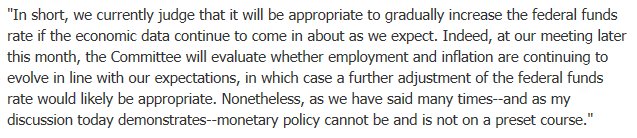 Fed's Yellen: Rate hike at next meeting "would likely be appropriate" if data good enough