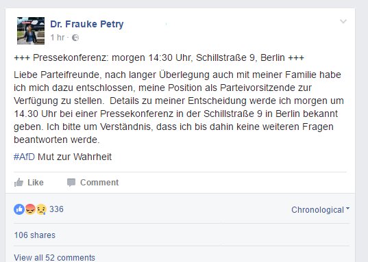 AfD Chairperson to resign Saturday , leadership election set for April 22nd