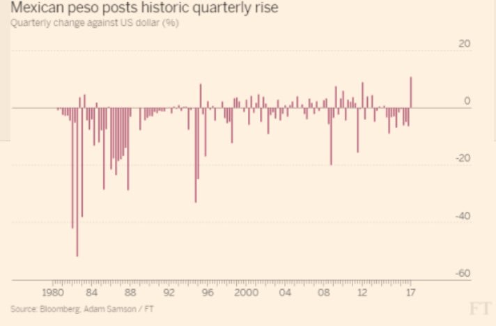 Mexico peso logs biggest quarterly gain since 1977. More effective than any border tax or other protective measures. http://on.ft.com/2oiYLQN