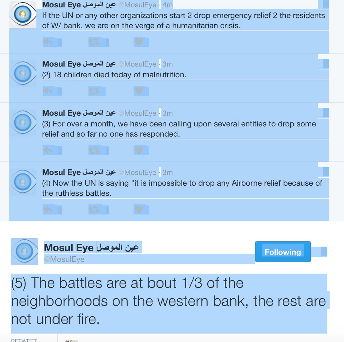 18 children die of malnutrition in #West_Mosul according to @MosulEye, an account that has continuously reported on the situation inside.