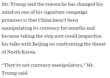 Trump to WSJ today: Nevermind https://www.wsj.com/articles/trump-says-dollar-getting-too-strong-wont-label-china-currency-manipulator-1492024312 …