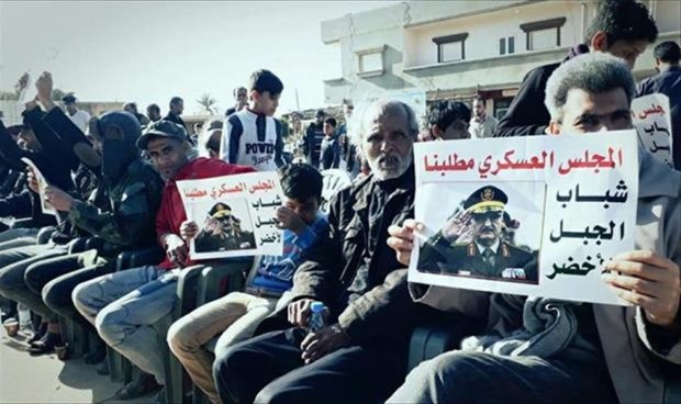 Demonstration in the town of Sousa demanding power be handed over to a military council led by Khalifa Haftar