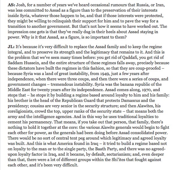 Must read/listen to @adamshatz & @joshua_landis on #Syria: Trump reverting to the Obama doctrine