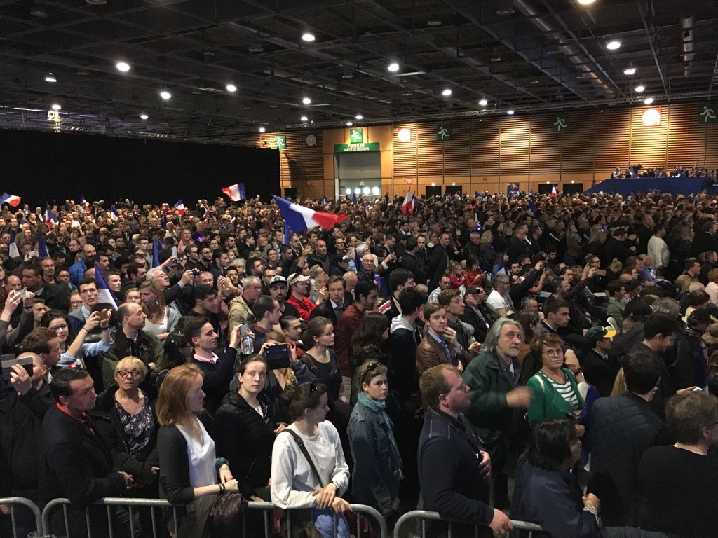 Standing room only at back of Marine Le Pen rally in Villepinte. France heads for final vote on May 7 deeply divided
