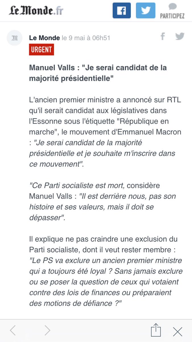 Well, apparently another candidate had already been selected for this constituency. Let's see if Macron makes an exception for Valls...