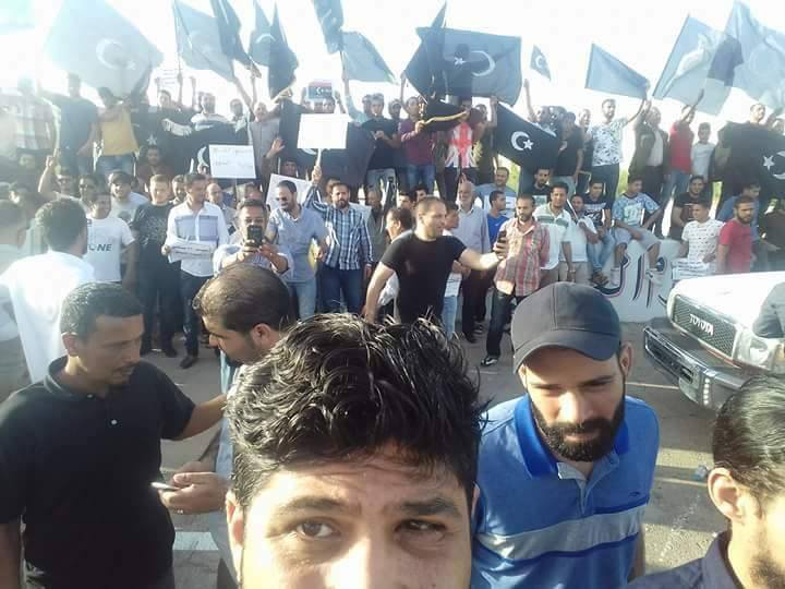 A protest against Libyan political agreement held in #Misrata today. Chief of Misrata Military Council Brig. Ibrahim Bin Rajab took part.