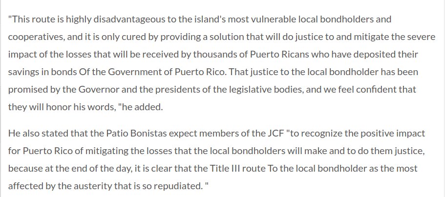 Local Puerto Rico bondholders say governor & legis leaders have promised to make up their losses in bk #muniland https://notiuno.com/bonistas-del-patio-dice-son-los-mas-afectados-con-quiebra/ …