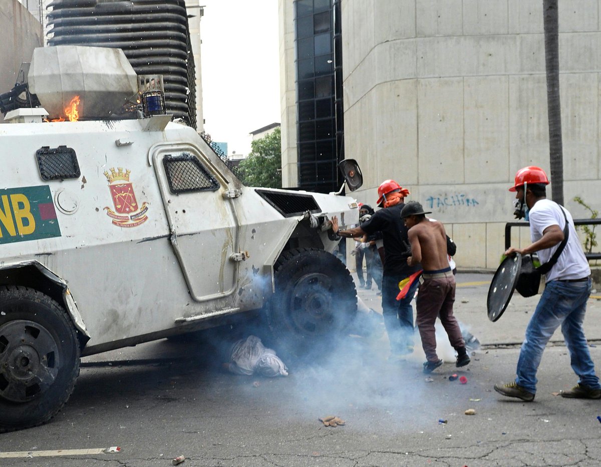 #UPDATE Venezuelan National Guard truck runs over opposition demonstrators in Caracas during violent protests http://u.afp.com/4Pcu