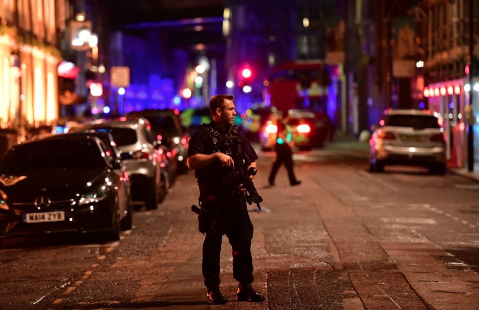 Officers have then responded to reports of stabbings in #BoroughMarket. Armed officers responded and shots have been fired. 2/3