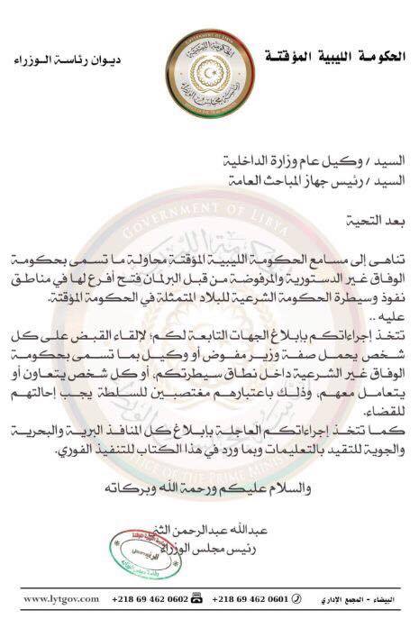 The Pres. of provisional government orders to arrest & ban anyone affiliated to the government of national accord. https://goo.gl/viLgrz