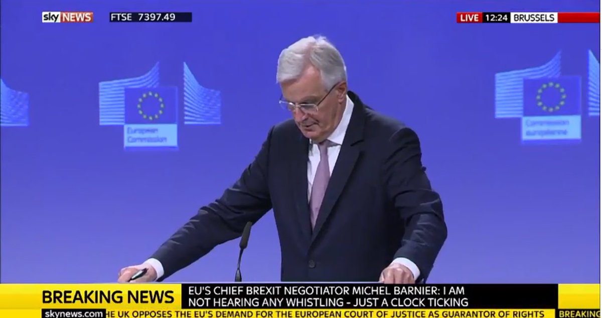 Barnier responding to Foreign Secretary's words yesterday that EU shd "go whistle": "I'm not hearing any whistling..just the clock ticking"