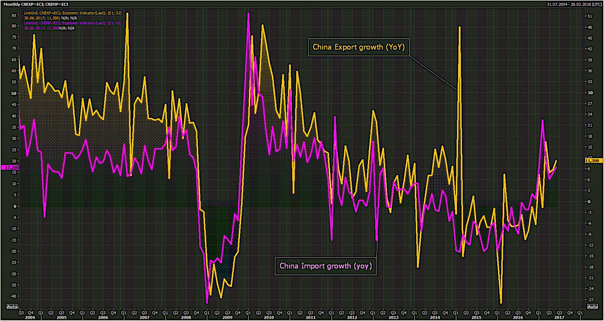 #China June trade numbers rise as global trade rebound keeps momentum: Exports rose 11.3% way above 8.9% expected. Imports increased 17.2%.