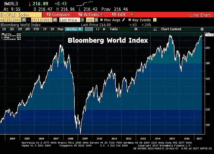 Hurray! Global stocks, when measured by Bloomberg World Index, are at record highs. What'd I miss?
