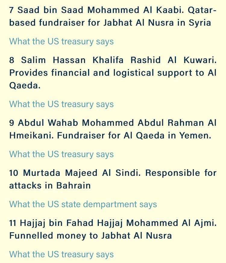 11 names of Designated Terrorist financiers in #Qatar are on UN, US, and Arab lists https://www.thenational.ae/world/the-americas/terror-designation-lists-highlight-qatar-s-failure-to-tackle-extremist-funding-1.582320 …