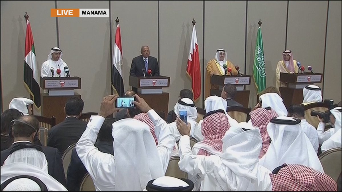 Watch LIVE: Foreign ministers of the countries blockading Qatar hold press conference in Bahrain's capital Manama http://aje.io/7fh8b