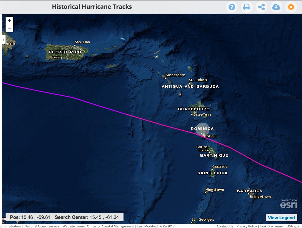 Since 1851, just one hurricane has made landfall in Dominica at Cat 3+: David (1979, Cat 4).