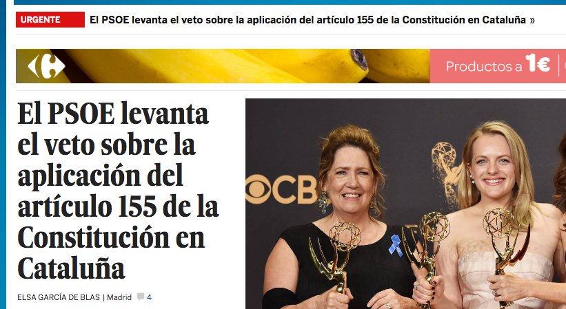 El País reports Spanish Socialist Party (PSOE) no longer averse to suspending home rule in Catalonia.