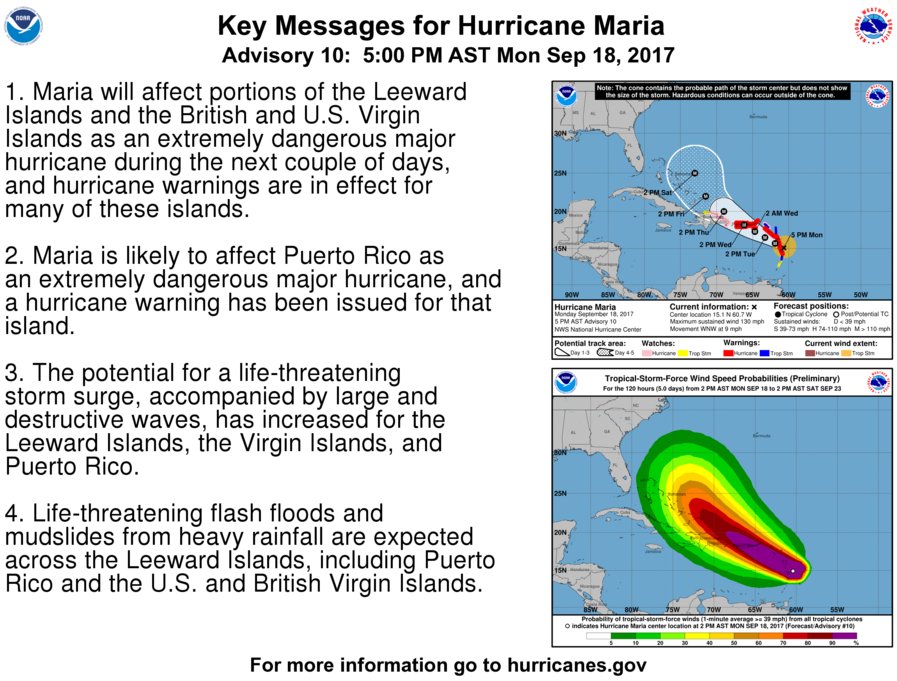 #Maria becomes an extremely dangerous category 4 hurricane. Here are the 5 PM EDT key messages. http://hurricanes.gov